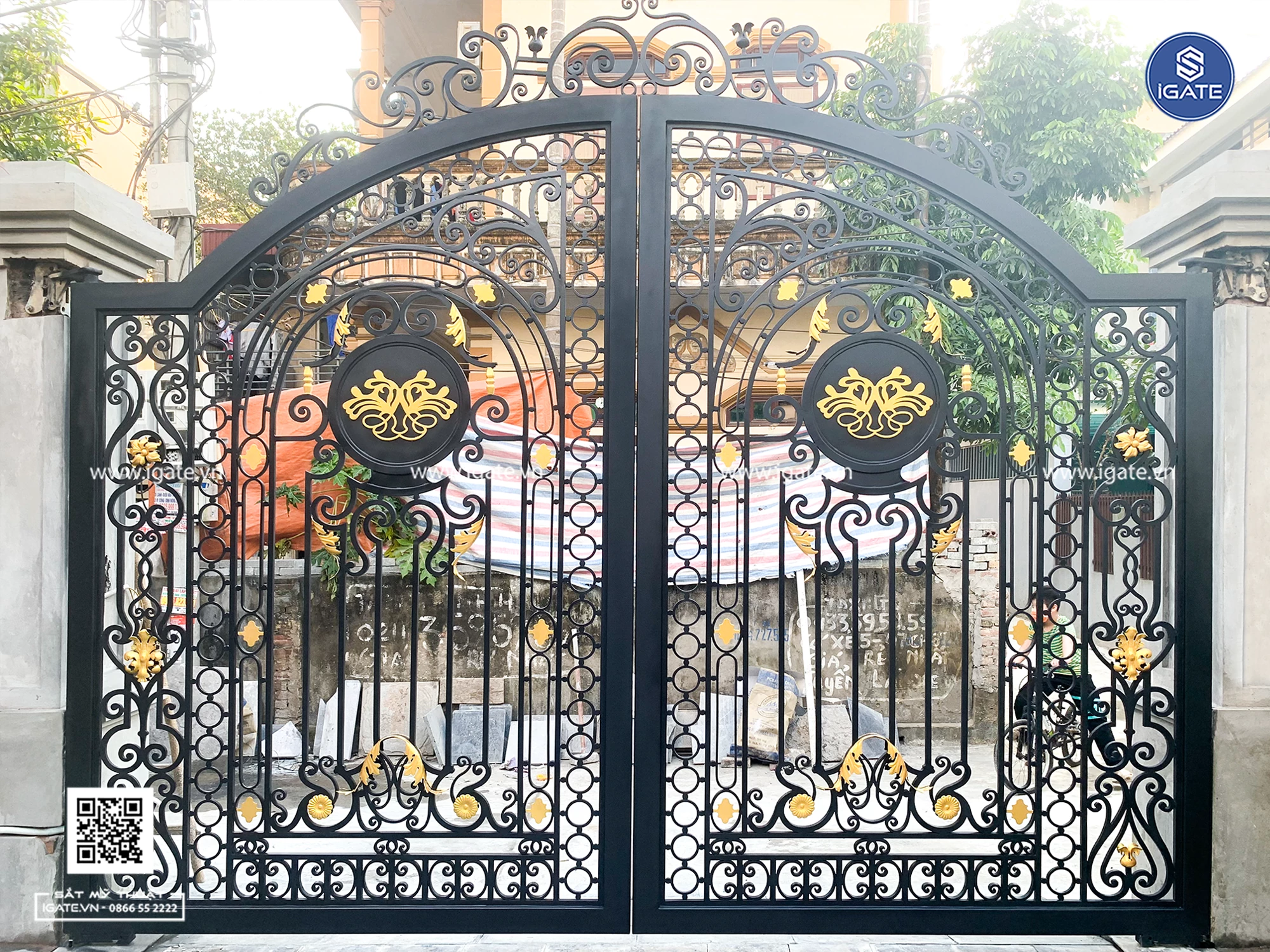 Cửa cổng đẹp 121 được thiết kế thể hiện phong cách riêng cho gia chủ. Với hai phù điêu đối xứng, được sơn bằng tông màu vàng tinh tế, là điểm nhấn và làm nổi bật bộ cửa cổng trong mắt người nhìn.